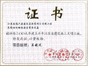 | 無(wú)錫市瑞希路高層住宅小區 | 120000平方米 | 省文明工地、市優(yōu)質(zhì)結構 |