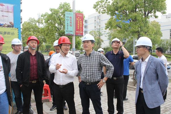 4月26日下午,玉環(huán)市委常委、經(jīng)濟開(kāi)發(fā)區黨工委書(shū)記孫群帶領(lǐng)開(kāi)發(fā)區相關(guān)部門(mén)負責同志至無(wú)錫總部承建的玉環(huán)中梁玖號院工程視察指導。